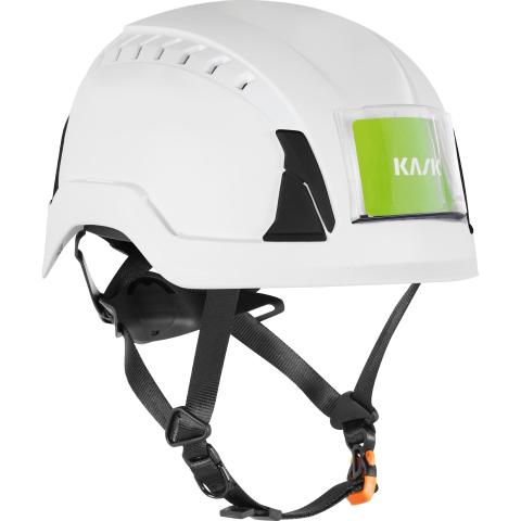 Tunnistetietotasku Kask Primero, Zenith X ja Quantum -sarjojen työkypäriin. Jäykkä malli, joka napsautetaan helposti kypärän etukoloon. Mahdollistaa henkilötietokortin, käyntikortin, yrityslogon, tai muun informaation pitämisen selkeästi näkyvillä työmaalla. Suojaa korttis roiskelta. Sisään mahtuvan kortin koko enintään 93 mm x 67 mm x 2 mm. Ulkopintaa voidaan myös käyttää tarran liimaamiseen.