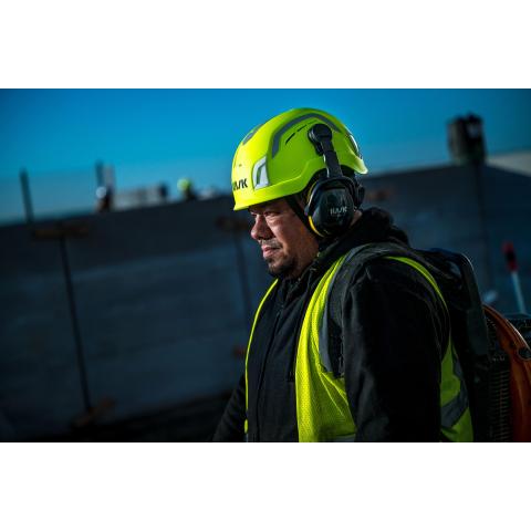 Tuuletettu korkealuokkainen työkypärä erittäin tilavalla mitoituksella ja erikoispitkällä monipistehihnastolla, sekä tehdasasennetuilla havaittavuutta parantavilla heijastintarroilla ja jälkihohteisilla otsavalaisinklipseillä. Erinomaisen istuvuuden, suojaavuuden, kulutuskestävyyden ja helpon lisävarusteliitettävyyden tarjoava malli. Säätäminen onnistuu helposti yhdellä kädellä. Pehmusteissa nopeasti napsautettava Click-In -rakenne, joten hygieniasta huolehtiminen ja kypärän ylläpito on kustannustehokasta.