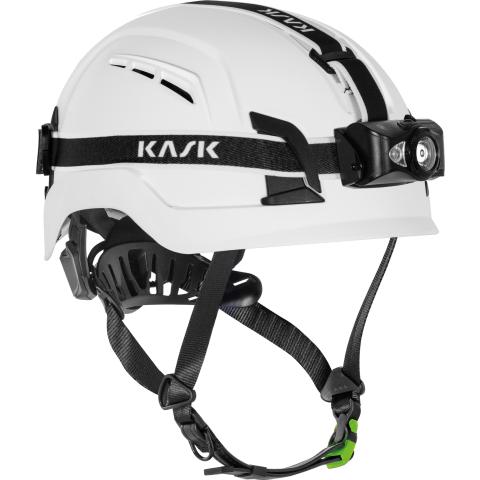 KL-2 otsavalaisinklipsi työkypärään (WAC00065-). Tämän avulla valaisin saadaan helposti kiinnitettyä työkypärän etukoloon, ja mahdollistetaan samaan myös kypärään kiinnitetyn visiirin sujuva käyttäminen.
